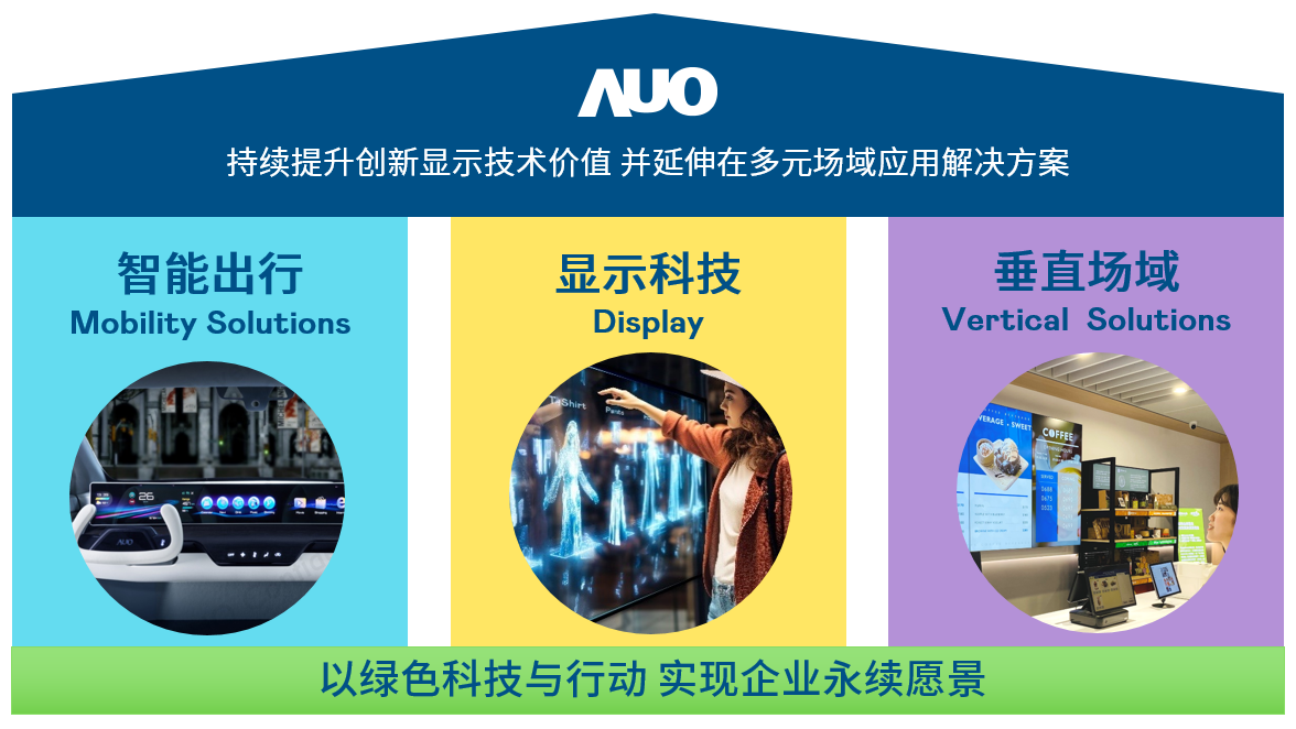 我们持续推动「双轴转型」,在精进显示技术附加价值(Go Premium),与深化垂直市场应用(Go Vertical)的策略下,对应437ccm必赢国际的优势竞争力与趋势,我们奠定显示科技智慧移动垂直场域三大永续营运支柱,在显示技术领域的根基之上,延伸布局多元场域应用解决方案。将先进显示科技助力智慧移动及垂直场域发展,并以绿色科技与行动为实践,在转型之路上贯彻永续经营之愿景。